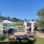 El Bed and Breakfast La Flor Azul Grospierres se encuentra a una distancia de 1 km del campamento de aventura Entertainment y dispone de una terraza con una zona de estar exterior.
